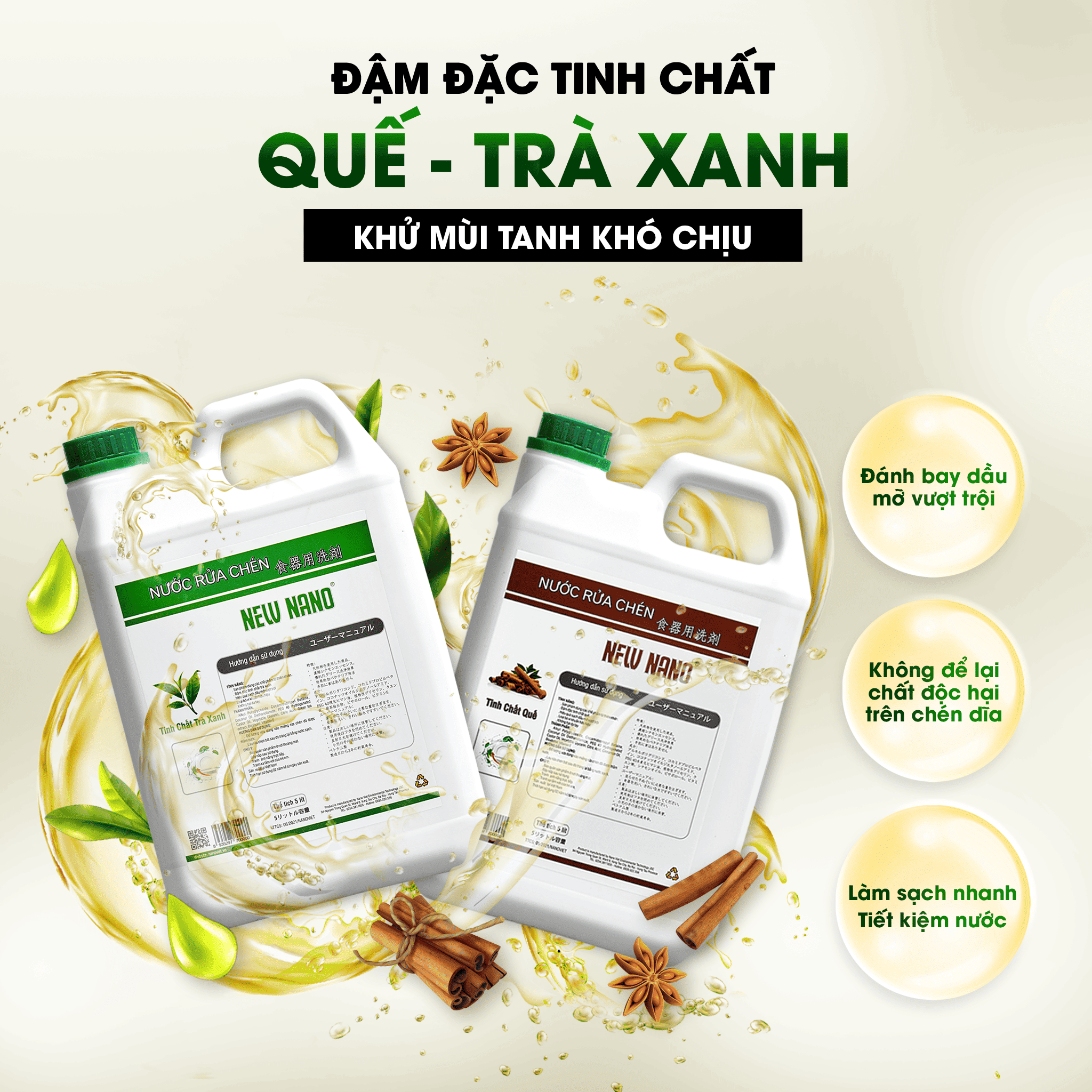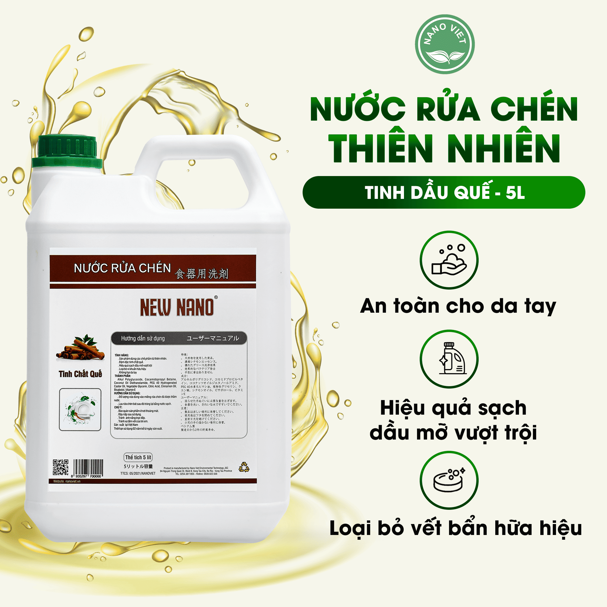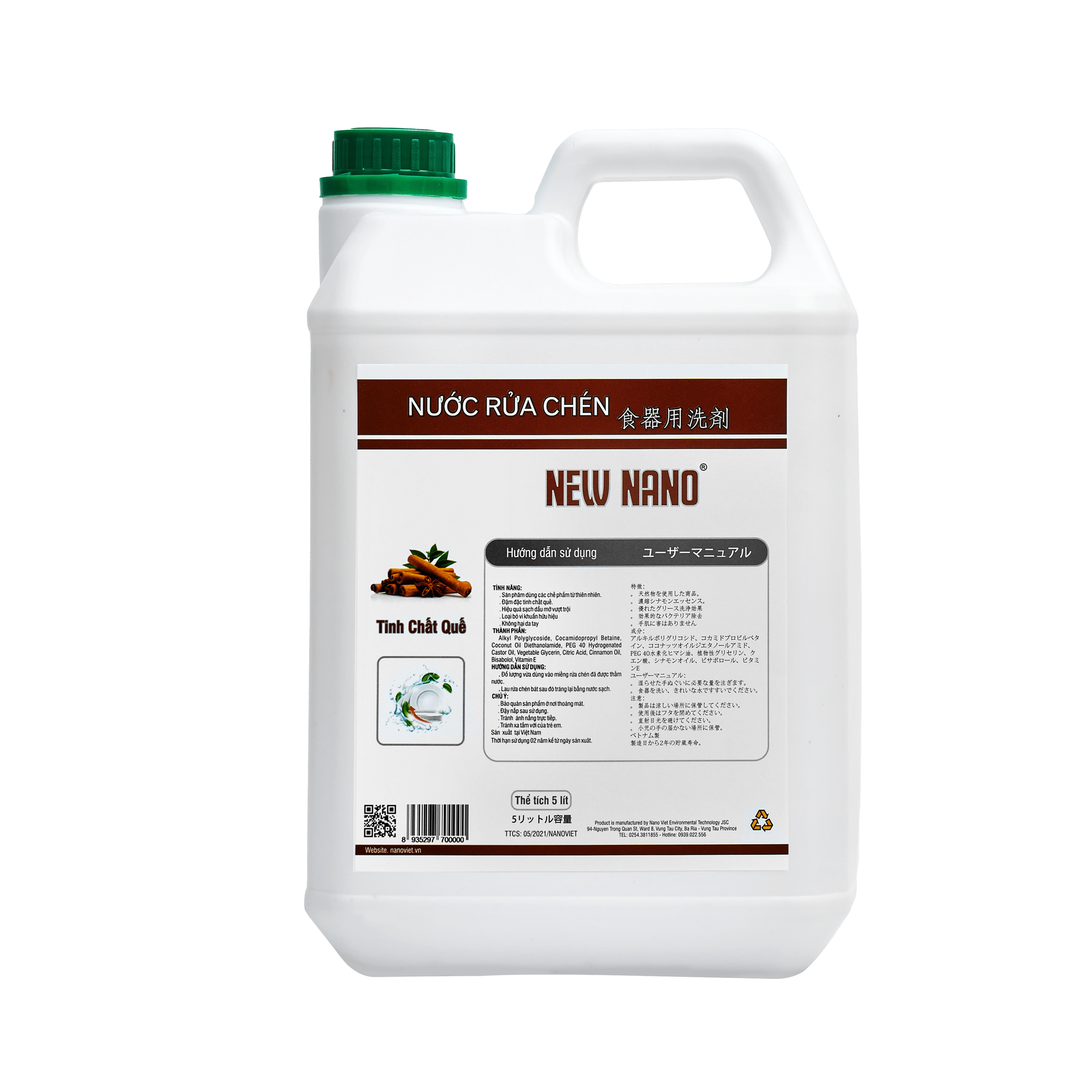 Nước rửa chén New Nano được sản xuất từ các thành phần thiên nhiên, an toàn cho người sử dụng và thân thiện với môi trường, đặc biệt không gây hại da tay.